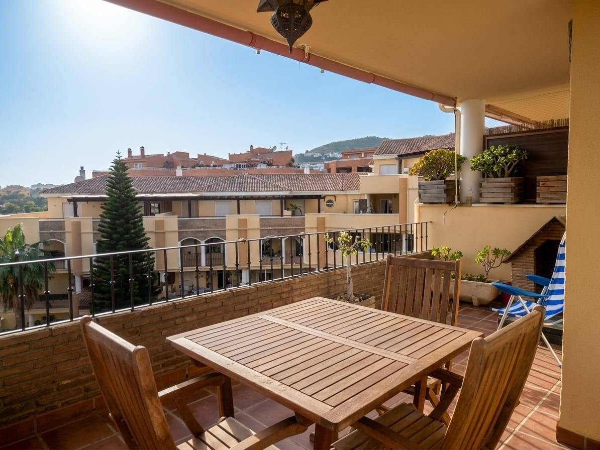 Vivienda ideal tanto para residencia habitual como inversión, ubicada en una zona tranquila y consolidada de Riviera del Sol, donde se combina perfectamente la privacidad, la luz natural y la cercanía a todos los servicios de la Costa del Sol.~~Situada en una tercera planta con ascensor, la propiedad cuenta con 64 m² interiores y una agradable terraza de 15 m² con vistas abiertas al mar. Gracias a su orientación oeste, disfruta de una excelente luminosidad durante toda la tarde, creando un ambiente muy acogedor y perfecto para relajarse o compartir momentos al aire libre.~~En el interior, la vivienda ofrece una distribución cómoda y funcional. Dispone de dos dormitorios, destacando el principal con baño en suite y acceso directo a la terraza, lo que aporta un extra de comodidad y privacidad. El segundo dormitorio, de carácter versátil, puede adaptarse fácilmente como habitación auxiliar, despacho o vestidor. Además, la propiedad cuenta con un aseo adicional, algo poco habitual en este tipo de viviendas.~~La zona de día se compone de un salón amplio y luminoso, con salida directa al exterior, y una cocina independiente totalmente equipada, lista para su uso desde el primer día.~~El inmueble forma parte de un recinto cerrado muy cuidado, con un ambiente tranquilo y familiar, que dispone de dos piscinas comunitarias, pistas deportivas y amplias zonas ajardinadas.~~Como valor añadido, el precio incluye una plaza de garaje de gran tamaño, con espacio suficiente para vehículo y moto, así como un trastero de aproximadamente 6 m².~~Su ubicación permite una excelente conexión con los principales puntos de interés: a tan solo 5 minutos en coche de la playa, 10 minutos de La Cala de Mijas, 15 minutos de Fuengirola, 20 minutos de Marbella y 30 minutos del aeropuerto de Málaga.~~En cuanto a gastos, la comunidad es de 92 € al mes y el IBI anual asciende a 280 €, lo que convierte esta propiedad en una opción muy equilibrada tanto para vivir como para rentabilizar.~~Una vivienda con buenas prestaciones, vistas abiertas y un entorno residencial consolidado que merece ser visitada.~~Para más información, concertar una visita o solicitar vídeo del recorrido completo, no dudes en contactar.~~En cumplimiento del Decreto de la Junta de Andalucía 218/2005, se informa al cliente que los gastos notariales, registrales, ITP y otros gastos inherentes a la compraventa no están incluidos en el precio. Los honorarios de intermediación están incluidos.